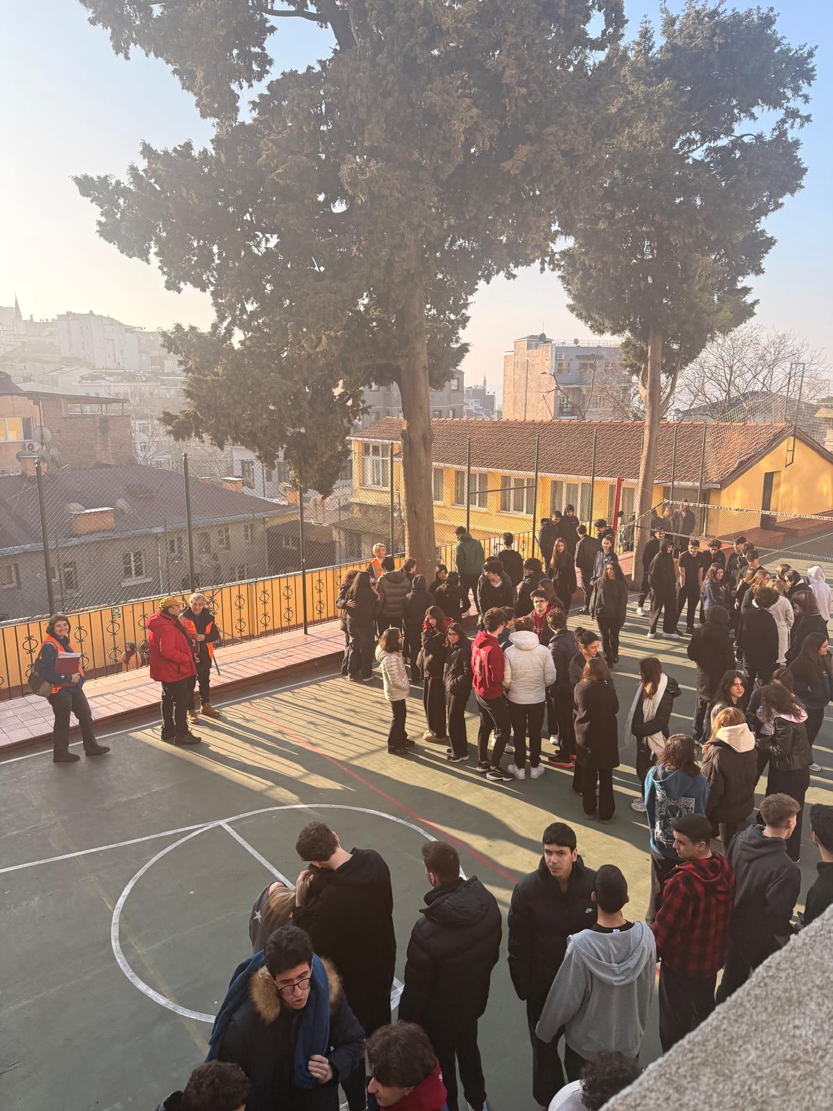 Öğrencilerimize önce arama, kurtarma ile ilgili eğitici bilgiler verildi. Daha sonra arka arkaya çalan zillerle önce "çök-kapan-tutun" eyleminden sonra, ikinci zil ile birlikte hızlıca ve sessizce binalarımız boşaltılarak bahçedeki toplanma alanlarında toplanıldı. Bu defa önceki tatbikatlarla kıyaslandığında hızlı birşekilde tahliye gerçekleştiğine şahit olduk. Böylece deprem ve diğer afetlere karşı hazırlıklı olmanın yolu tatbikatlardan geçtiği gerçeğini yaşamış olduk. Özverili çalışmalarından dolayı öğretmen ve öğrencilerimize teşekkür ederiz.