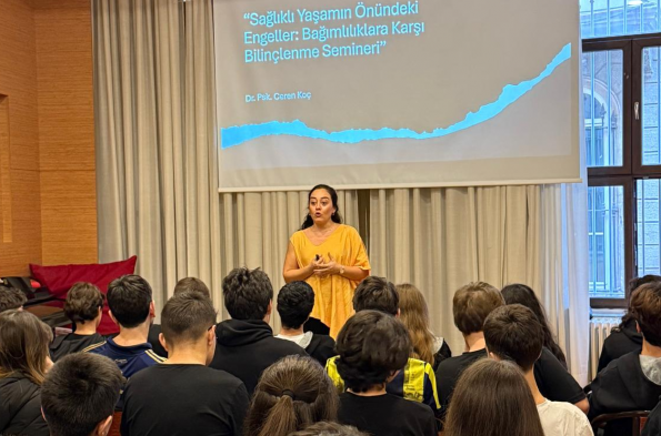 Yeniden Eğitim ve Sağlık Derneğinden Uzm. Psikolog Ceren Koç öğrencilerimize alkol, madde ve teknoloji bağımlılığı ile ilgili olarak “bağımlılık nedir, nasıl gelişir, nelere yol acar ve nasıl bağımlı