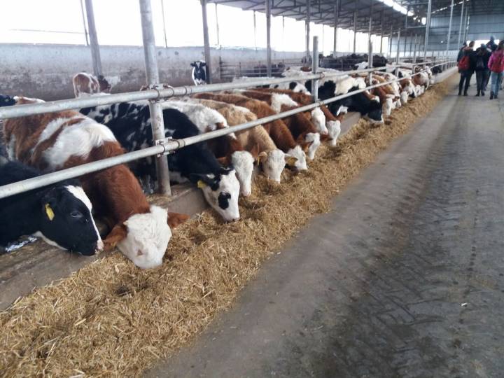 çiftliği gezdirmeye başladı. İlk olarak mandıraya girdik. Burada sağılan