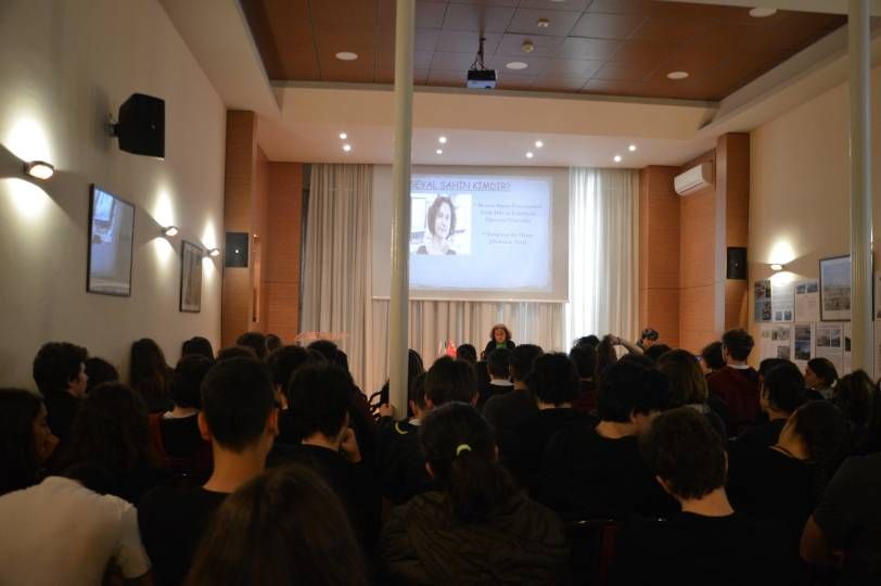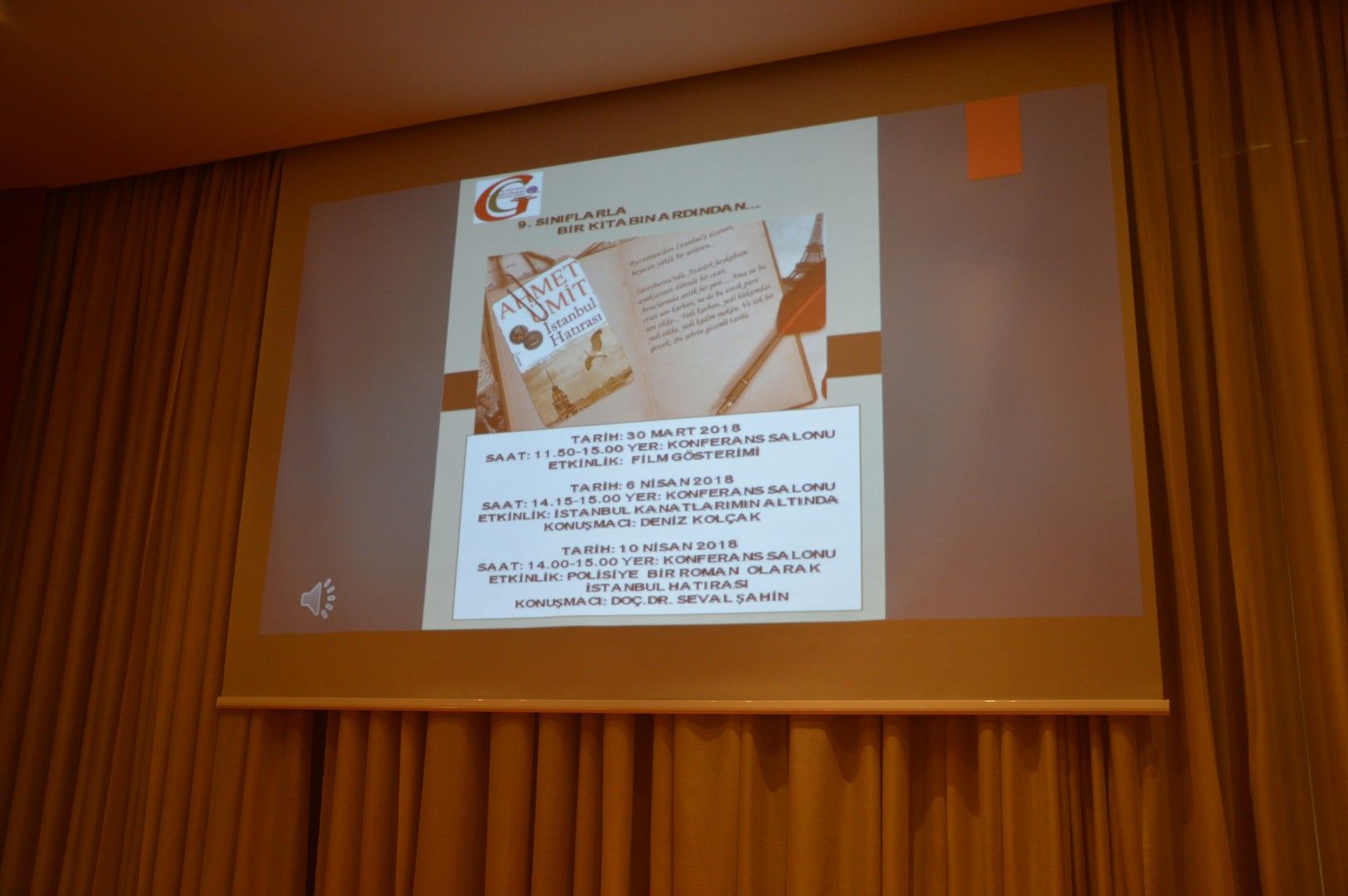 9. Sınıflarla “Bir Kitabın Ardından” projesinin üçüncü durağında ise Galileo Galilei İtalyan Lisesi, Mimar Sinan Üniversitesi Öğretim Üyesi Doçent Doktor Sayın Seval Şahin söyleşisine ev sahipliği yaptı. Polisiye roman kurgusu üzerine yoğunlaşan söyleşinin konusu “Bir Polisiye Roman Olarak İstanbul Hatırası” idi. Öğrencilerimizin sorularıyla katkıda bulundukları söyleşi, büyük ilgi ve beğeni topladı.