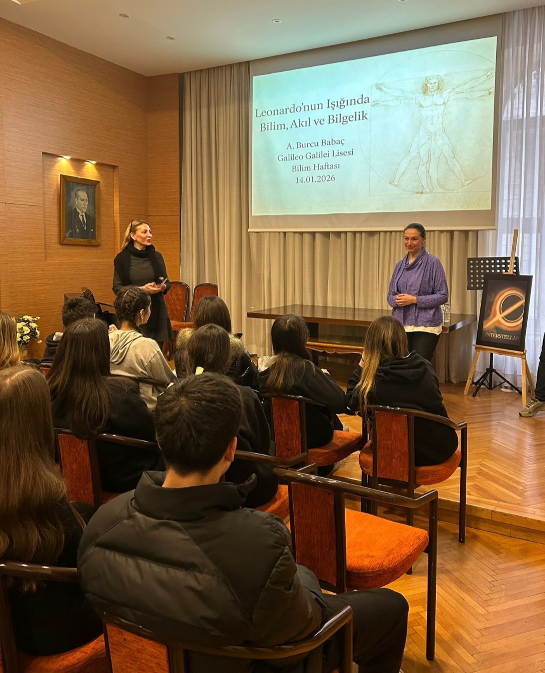 Galileo Galilei Bilim Haftası kapsamında Klinik Psikolog Burcu Babaç Hazırlık ve 9. sınıf öğrencilerimize Leonardo da Vinci’nin bilime bakış açısını , bilim algoritmasını Leonardo da Vinci’nin hayatından ve çizimlerinden örnekler vererek anlattı.Bu değerli bilgiler için kendisine çok teşekkür ederiz.