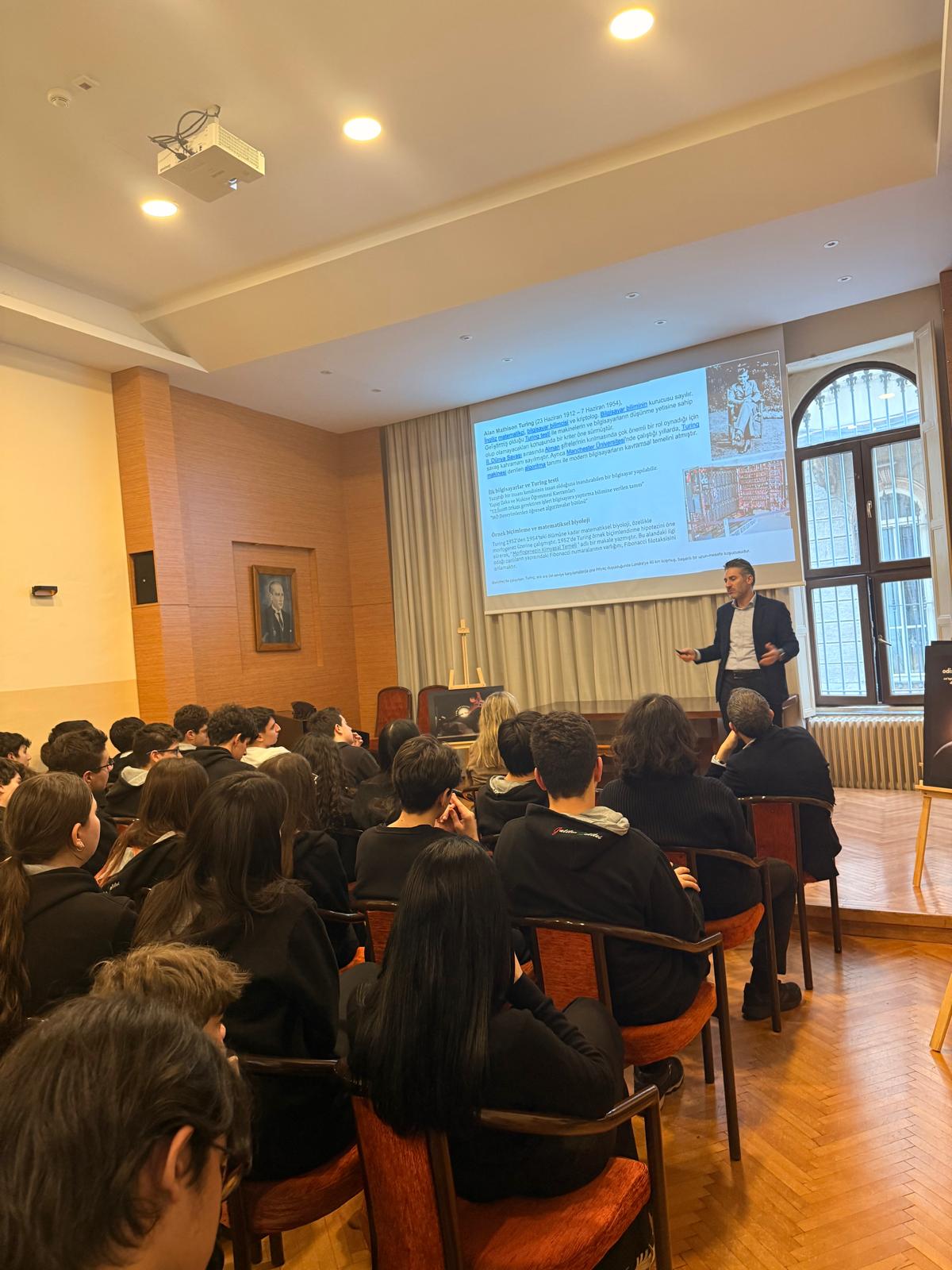 Galileo Galilei Bilim Haftası'nın son konuğu olarak Satış ve Finans Direktörü Sayın A. Kıvanç Güler öğrencilerimizle buluştu. "Yapay Zekada Son Gelişmeler ve Etkilenecek Meslekler" konulu sunumu öğrencilerimiz tarafından ilgiyle takip edildi. Değerli konuğumuza katılımları için teşekkür ediyoruz.