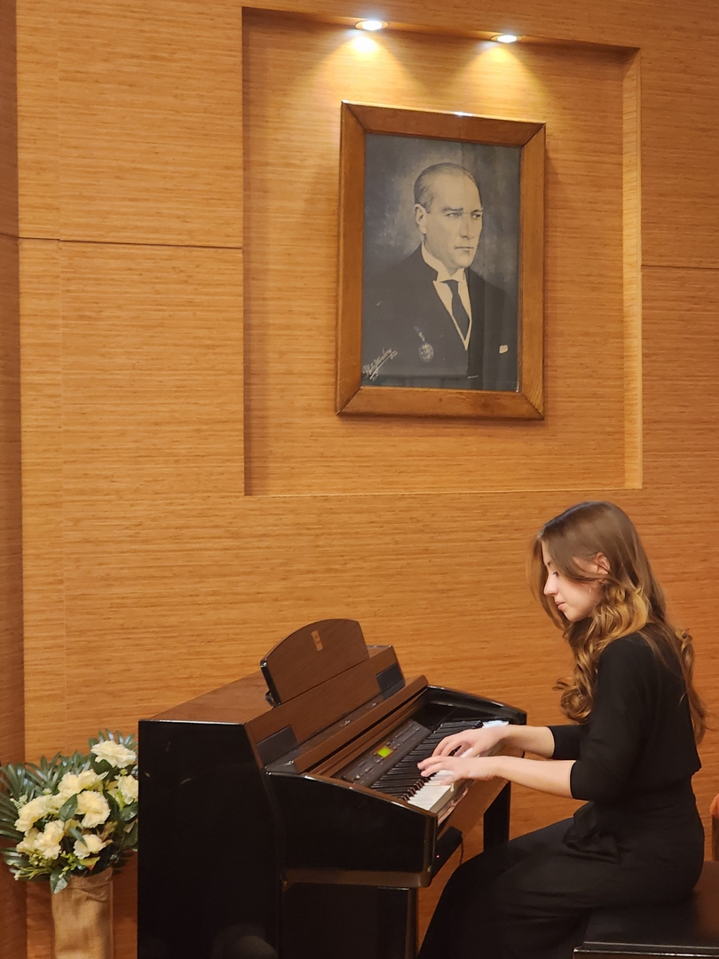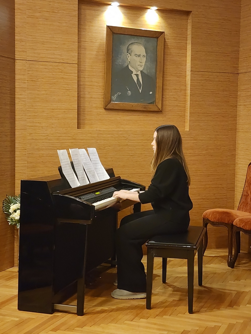 öğrencilerimiz Taylan Kıran (10C), Pelin İncesoy (10C), Beren Yüksel (10A), Yiğit Efe Şahin (10A), Mina Urgun (11B), İrem Özkan (11A) ve Ayşegül Ataklı (11A)’nın sunduğu müzik resitali ile başladı.
