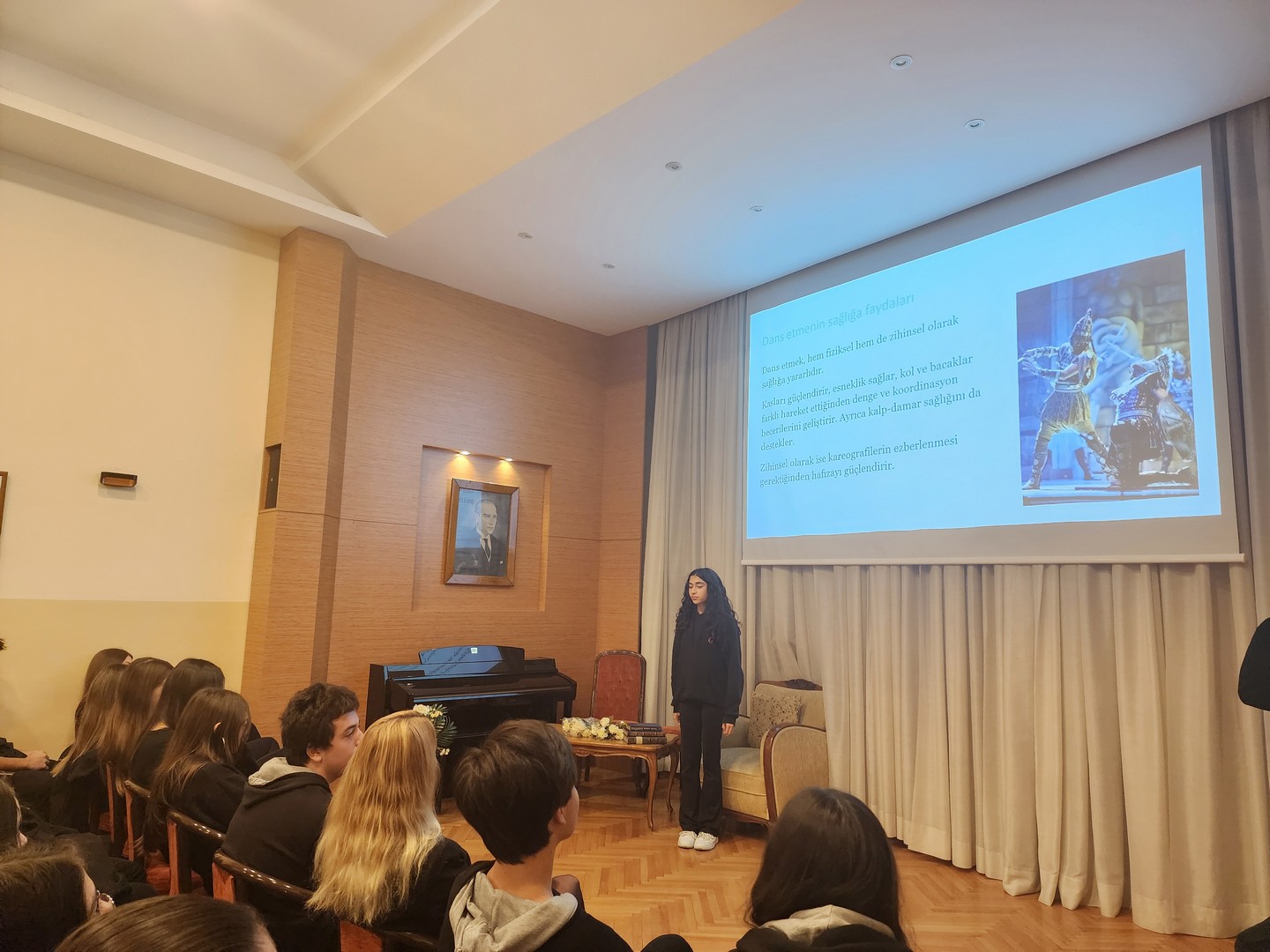 alileo Galilei Lisesi Spor, Sağlık ve İtalyan Mutfağı Haftası kapsamında öğrencilerimizden 9A sınıfından Yağmur Yakupoğlu ve 10A sınıfından Ezo Ertemiz dans ve dans türleri hakkında, 11B sınıfından Caner Kaan Doğan golf ve golf kuralları hakkında , 11B sınıfından Ege Bozoğlu okçuluk sporu hakkında, 11C sınıfından Buse Sezerer buz pateni hakkında , 11C sınıfından Dora Güvengez ve 11B sınıfından Poyraz Öktem de yüzme sporu hakkında sunumlar gerçekleştirdiler.