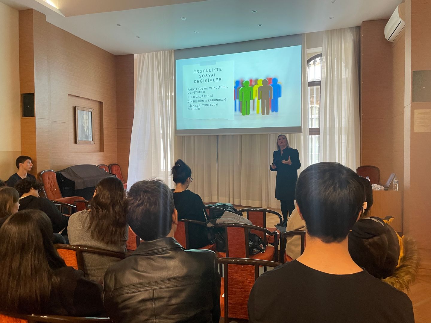 Çocuk Psikiyatristi Uzman Doktor Hülya Bingöl Çağlayan, "Ergenlikte Duygusal Gelişimin Bağımlılığa Götüren Süreci" ni öğrencilerimizle paylaştı.